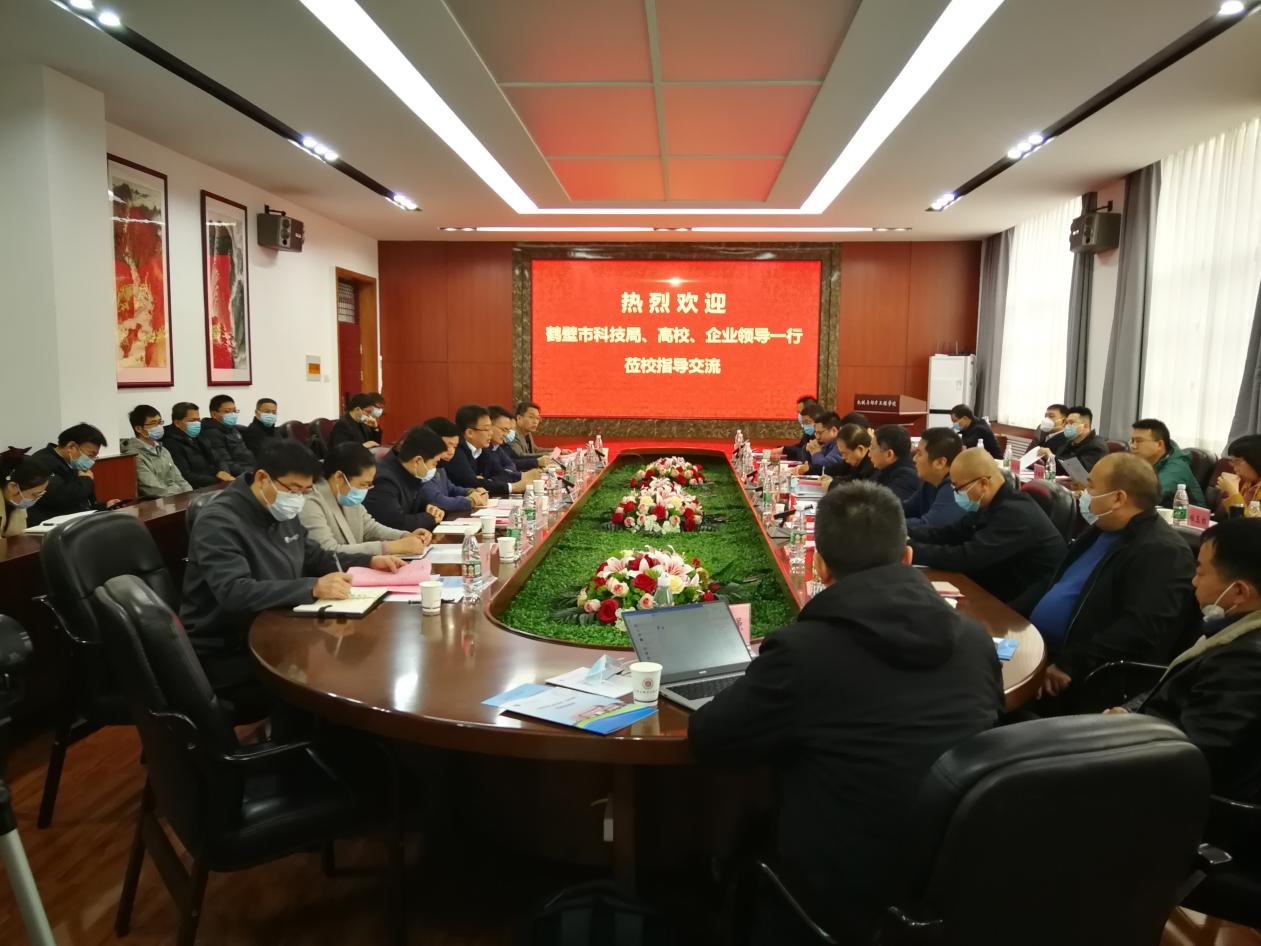 3月18日,为落实“万人助万企”活动要求,鹤壁市科学技术局党组书记、局长郭志鹏、副局长郝永军率鹤壁市有关企业代表共19人莅临我校进行科技对接活动。学校在机械学院会议室召开对接会,会议由科学技术处副处长王兴国主持。