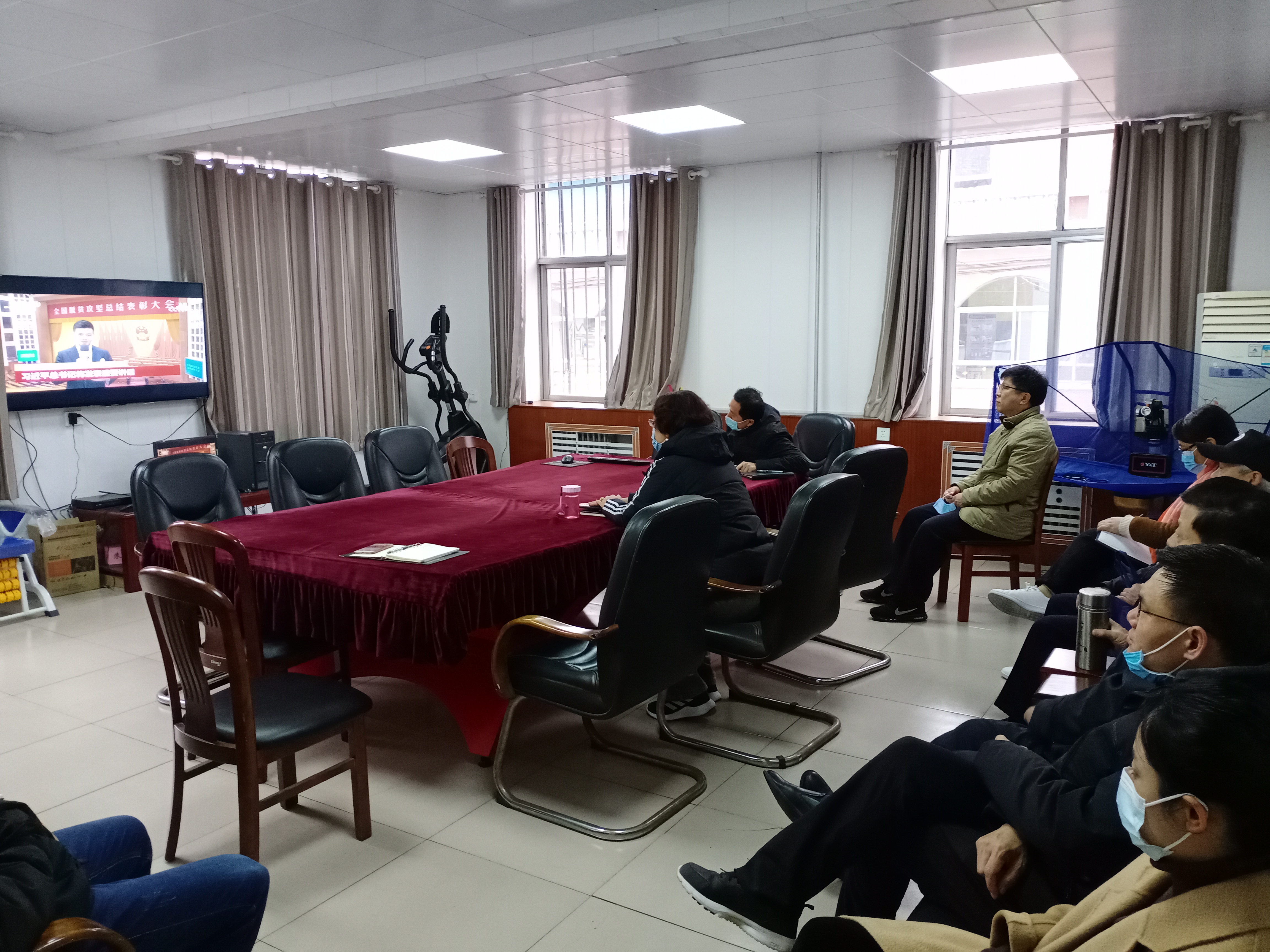 2月25日,离退休工作处在二楼会议室组织在职职工集中收看了全国脱贫攻坚总结表彰大会实况直播。