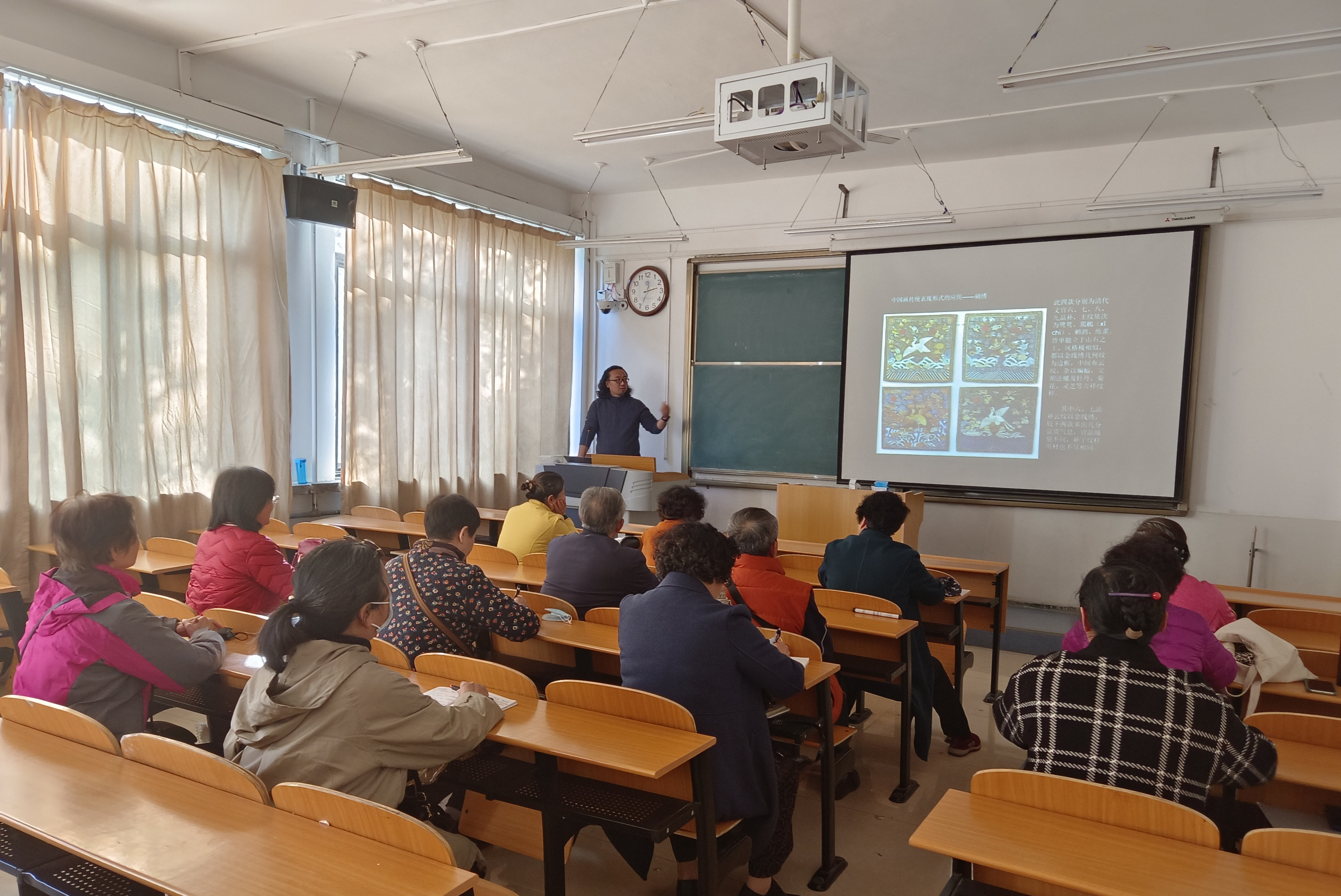 10月28日上午,离退休工作处举办的国画鉴赏老年兴趣班在北校区1号教学楼1201多媒体教室开班,20余名老同志参加兴趣班。