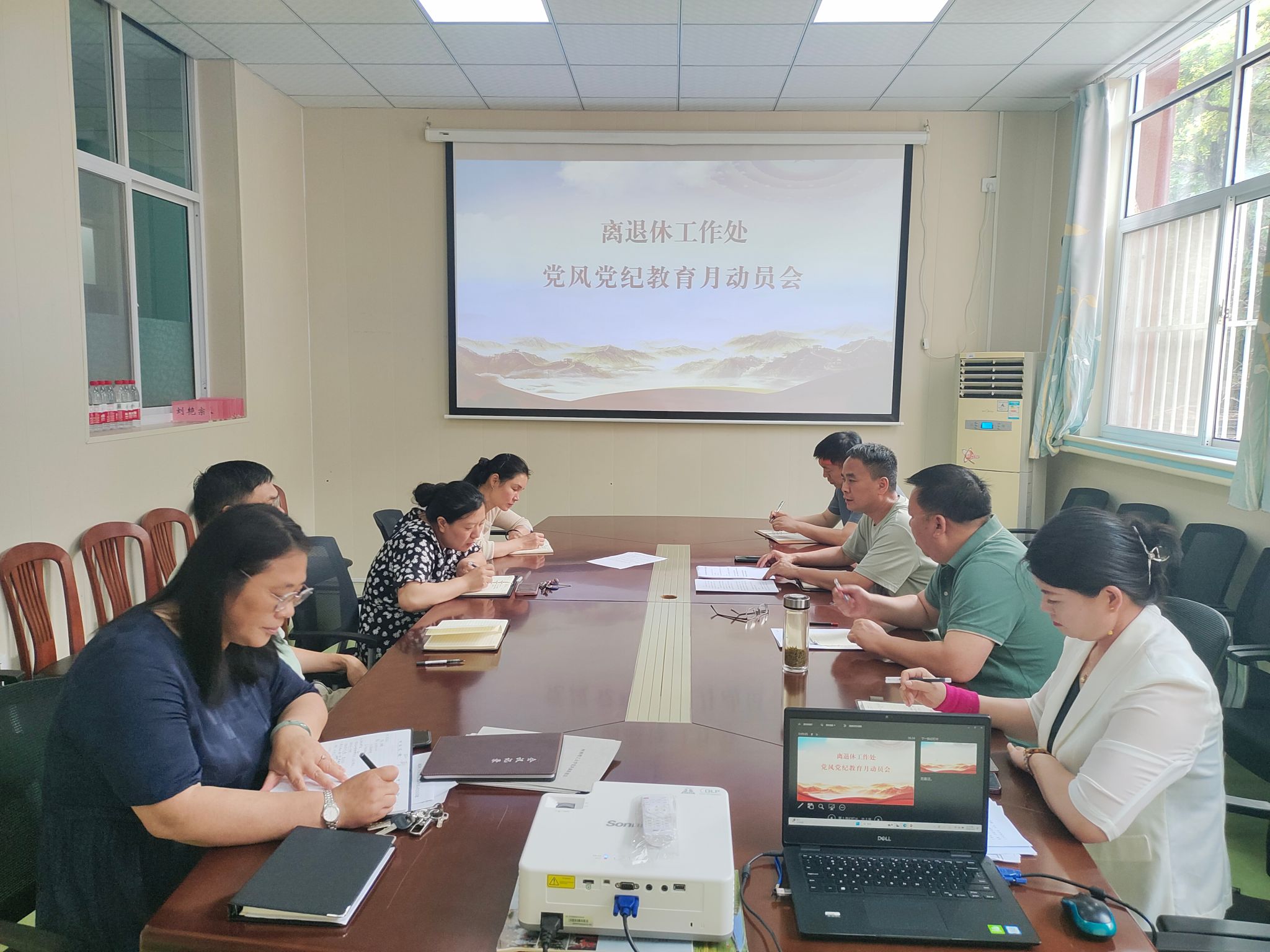 就扎实开展好党风党纪教育月活动,王瑞提出三点要求:一是要提高政治站位,加强组织领导,精心安排部署,抓好工作落实。二是要结合处党委实际,拓展教育载体、创新教育方式、突出教育特色,确保工作实效。三是要以此次教育月活动为契机,全面加强党的纪律建设,纵深推进全面从严治党,为推动离退休工作处高质量发展,加快推进学校“双一流”创建营造风清气正的良好政治生态。