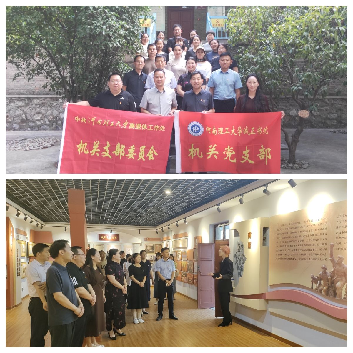 为认真贯彻落实学校第三次党代会精神,引导党员把学习党代会精神与思考谋划自身岗位工作结合起来,学以致知、学以力行,在学习宣传贯彻党代会精神中发挥先锋模范作用。6月3日下午,离退休工作处党委机关党支部与诚正书院机关党支部到北校区“焦作煤矿工人大罢工纪念馆”联合开展“学习贯彻党代会精神,共同推动学校高质量发展”主题党日活动。