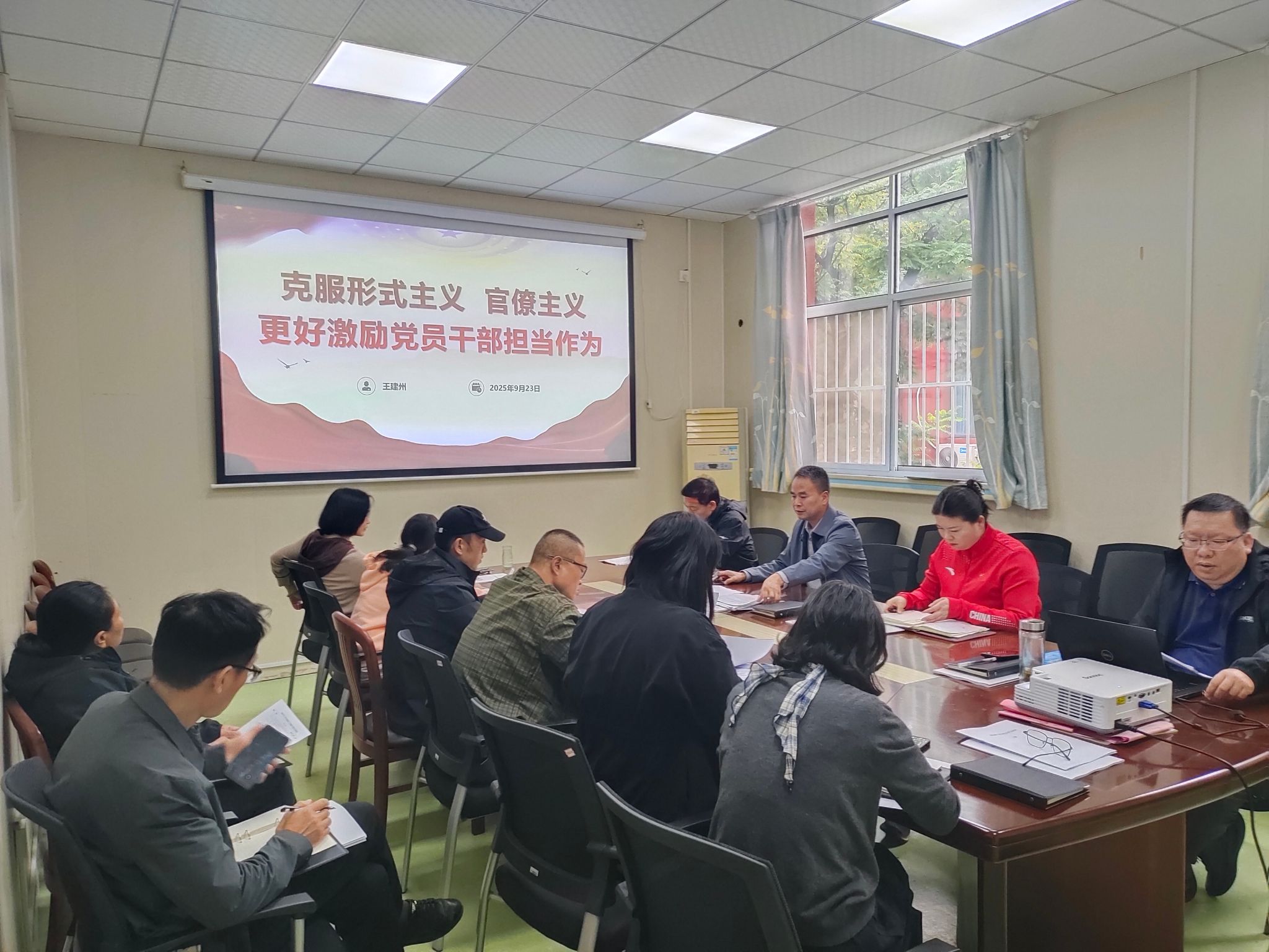 为巩固和拓展深入贯彻中央八项规定精神学习教育,推进作风建设常态化长效化,9月23日下午,机关党支部书记王建州在处二楼会议室以《克服形式主义、官僚主义,更好激励党员干部担当作为》为题讲授专题党课,支部全体党员参加。