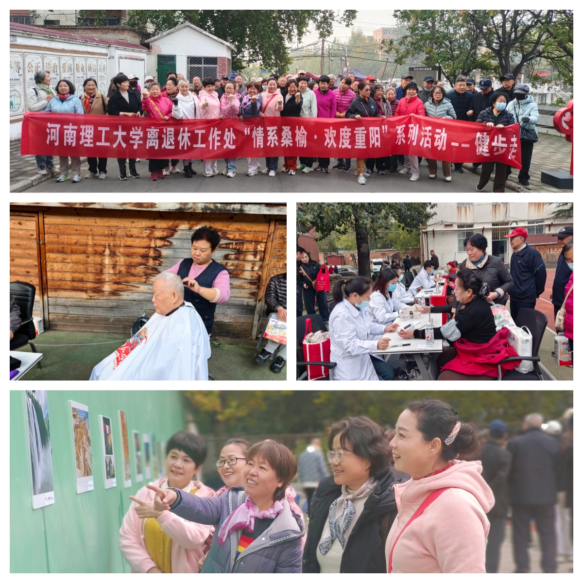 上午8时许,活动开始。随着出发指令响起,老同志们纷纷踏上健身步道,大家一边欣赏路边美景,一边交流日常养生心得。在套圈游戏现场,老同志们瞄准目标、轻掷套圈,现场变成了欢乐的海洋。在义诊区,受邀的河南理工大学附属医院的医护人员细致为老同志测量血压、血糖和血脂,用专业仪器检查眼睛,开展心脏、脂肪肝等常见老年病检查,并提供个性化健康建议,手把手教大家做简易养生操。理发区,志愿者理发师耐心询问他们的喜好,精准修剪发型。同时,还举办了老年手机摄影作品展。