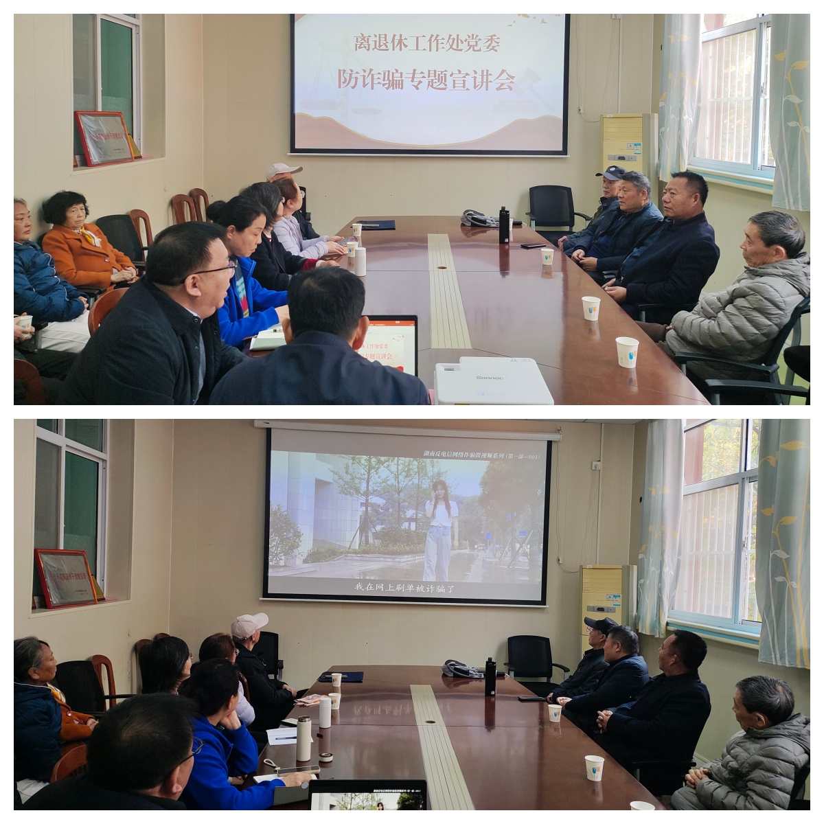 为切实提升离退休职工反诈意识与识骗防骗能力,11月5日,离退休工作处党委组织开展了防诈骗知识专题宣传活动,为离退休职工筑牢财产安全“防护墙”。离退休职工各党支部书记参加了此次专题宣传活动。