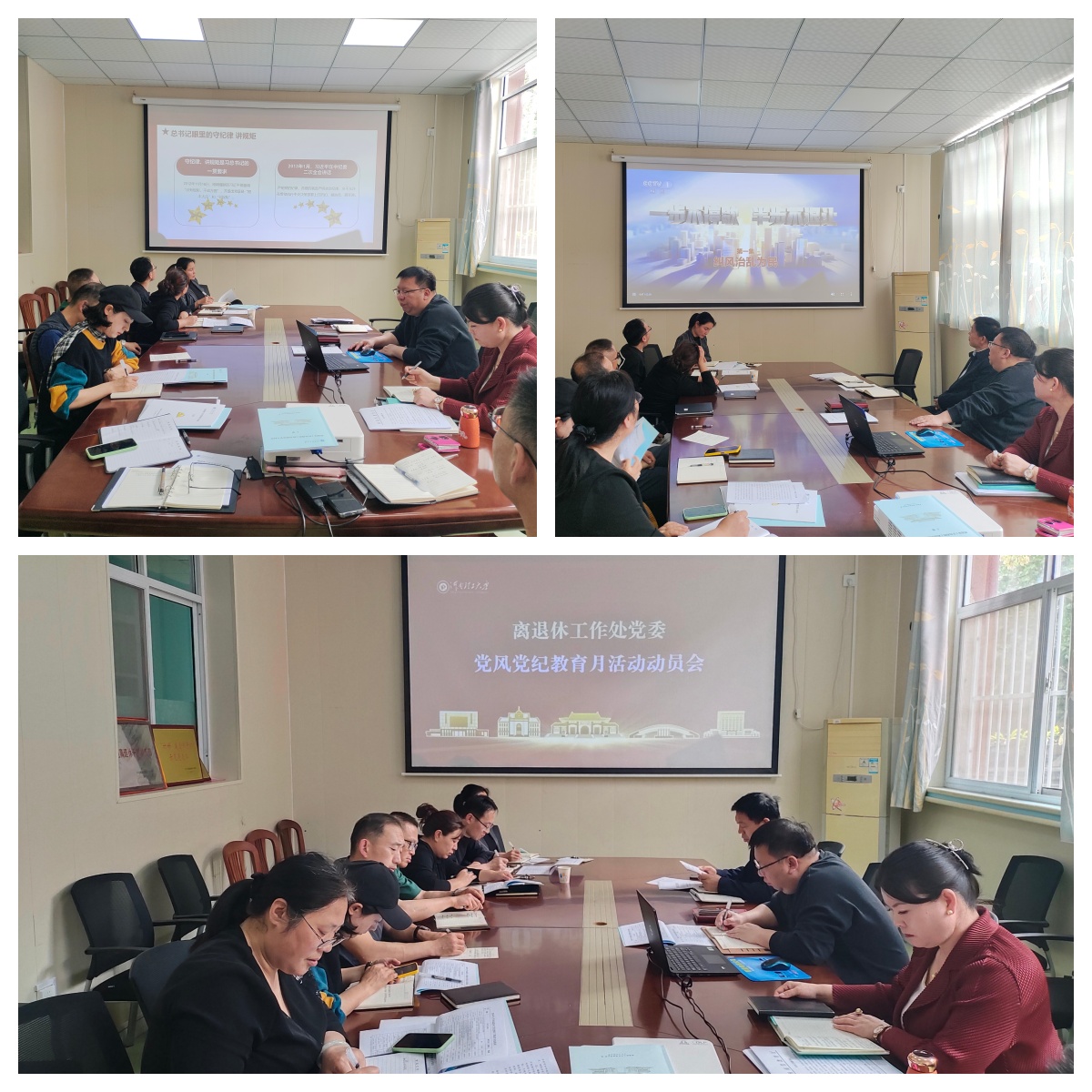 4月14日,离退处在北校区处二楼会议室召开2026年党风党纪教育月工作部署会全体工作人员加会议