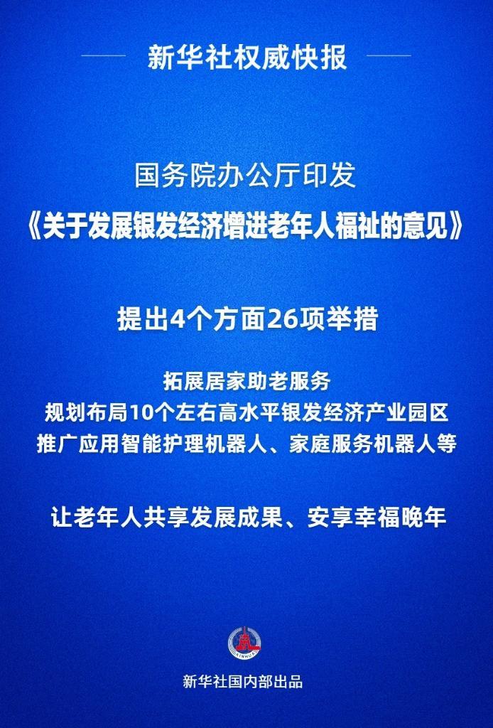 《意见》强调,发展银发经济,事关国家发展全局,事关人民福祉。各地区、各部门要在党中央集中统一领导下,完善工作机制,加强统筹协调,推动各项任务落实落细。