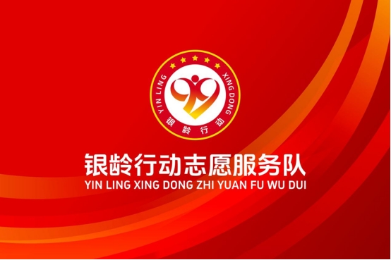标识外圈有“银龄行动”的中文和拼音字样,五个五角星象征着“银龄行动”的高质量服务以及对老年志愿者无私奉献的高度认可和赞扬。