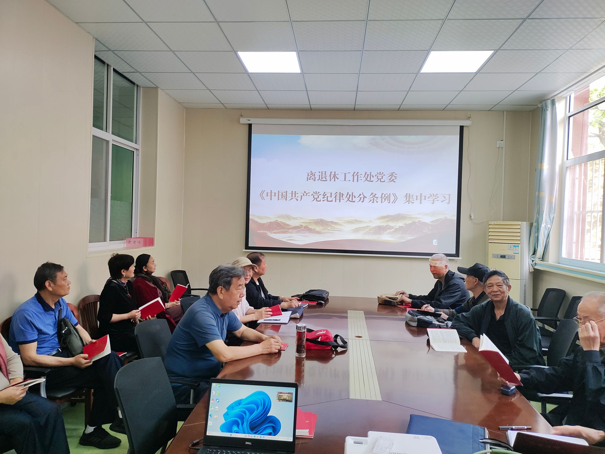 为推动广大党员干部在学习贯彻《中国共产党纪律处分条例》(以下简称《条例》)上下功夫见成效,进一步增强纪律意识、提高党性修养,4月25日上午8:30,离退休工作处党委在南楼207会议室组织开展《中国共产党纪律处分条例》学习。机关党员和部分离退休党员代表参加了集中学习。