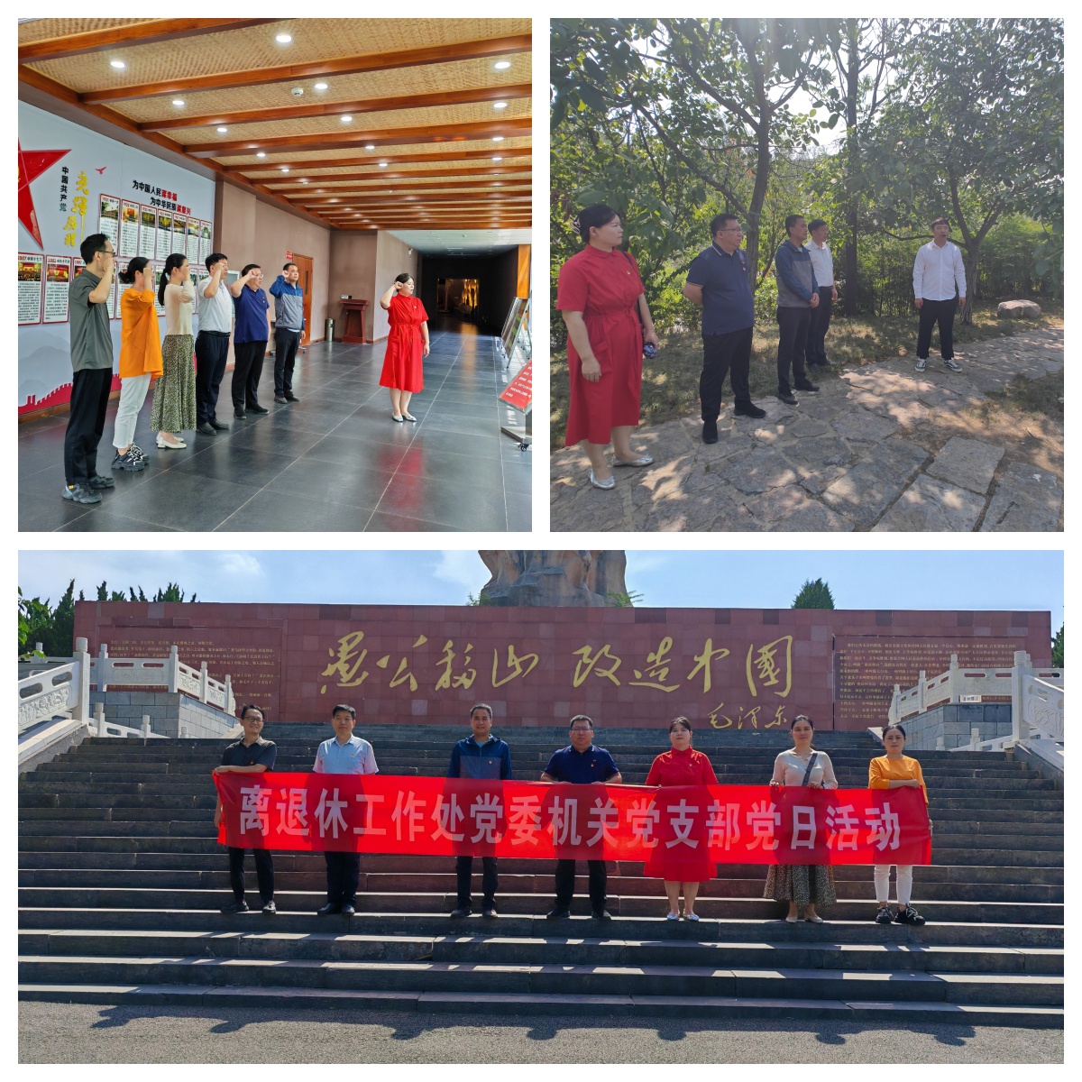 为教育引导党员砥砺初心使命,凝聚发展力量,推动党纪学习教育走深走实,6月28日,离退休工作处党委机关党支部组织党员干部赴愚公移山红色教育基地开展“牢记初心使命,争当出彩先锋”主题党日活动。