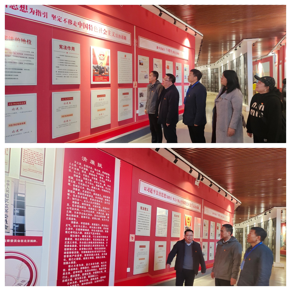 在基地工作人员的引导下,党员干部认真观看展厅内一件件珍贵文物、一幅幅历史照片,重点观看了“习近平法治思想”“中国共产党党风廉政建设光辉历程”“中国古代廉政文化”等展板。大家驻足仔细观看,认真学习领悟,将始终绷紧党纪国法之“弦”,始终做到心有所畏、言有所戒、行有所止。