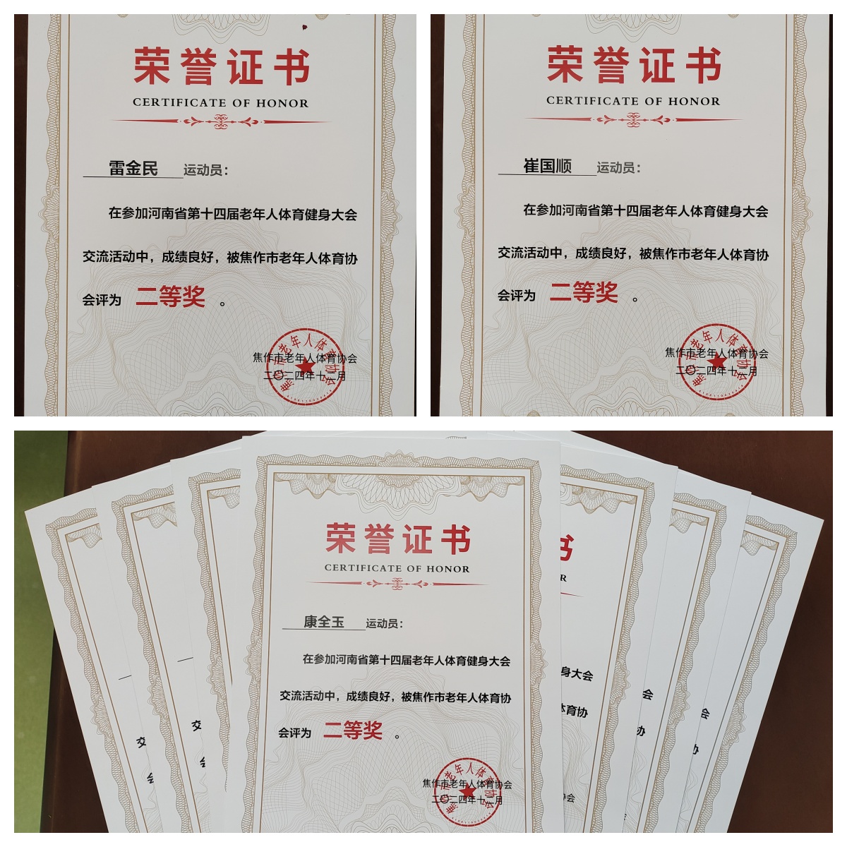 近日,我校参加河南省第十四届老年人体育健身大会取得佳绩,参赛选手分别获得地掷球项目二等奖、门球二等奖、气排球二等奖、网球男双优秀奖。