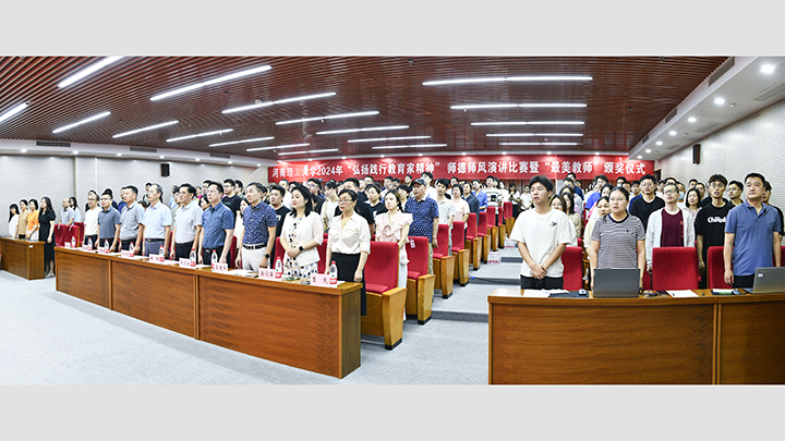 为全面加强新时代教师队伍建设,弘扬高尚师德师风,6月4日,学校“弘扬践行教育家精神”师德主题教育演讲比赛在国家重点实验室大楼学术报告厅成功举办。校党委副书记解伟致辞,校工会、宣传部、教师工作部、教务处、研究生院、各教学学院等单位负责人、教师代表等近200人到场观看。