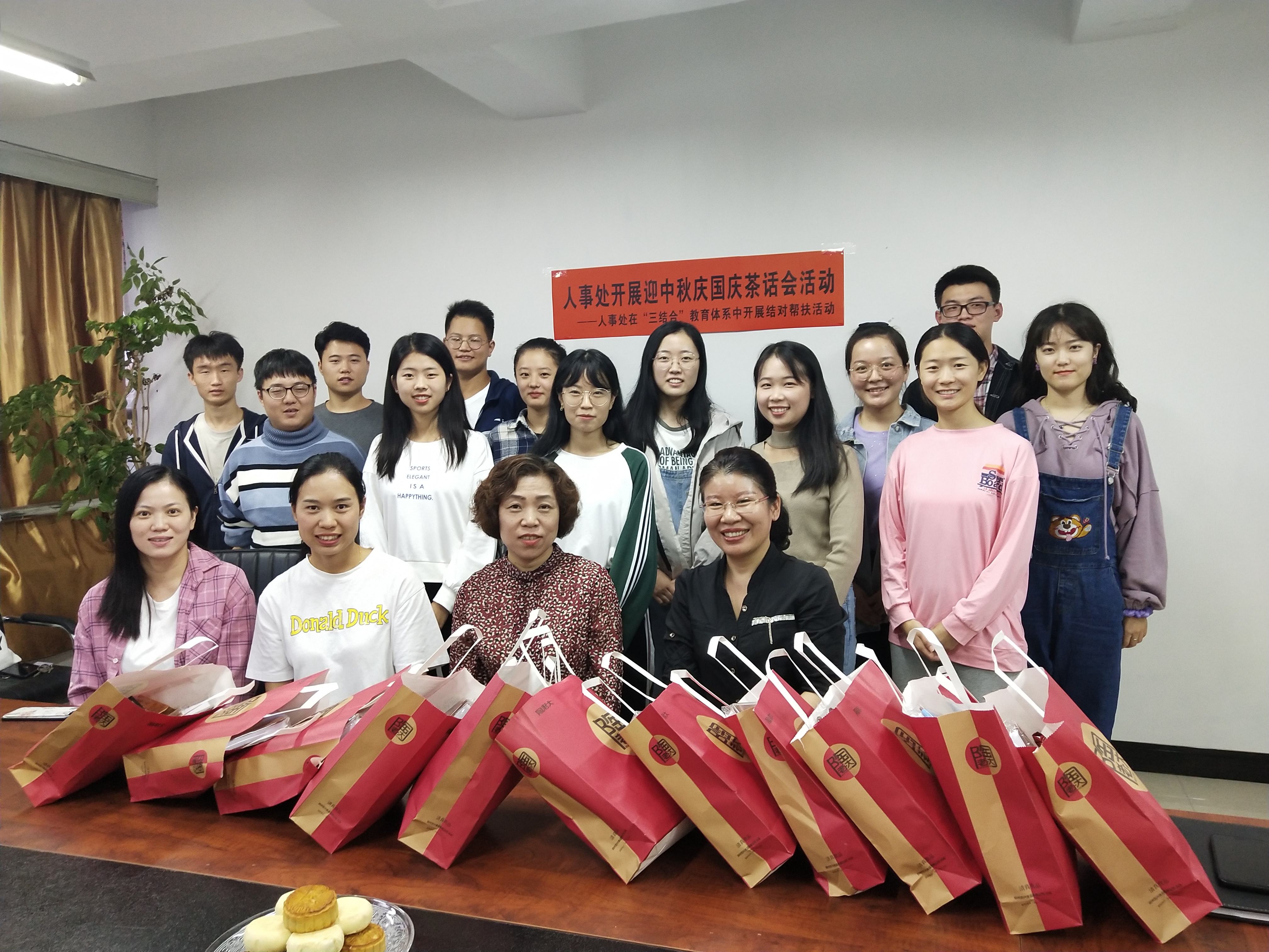 9月30日下午,为体现“家庭、学校、社会”三结合的教育体系,践行“全员育人”的理念,人事处利用传统佳节,积极开展结队帮扶活动,邀请在人事处勤工助学的同学们,开展迎中秋庆国庆茶话会活动。