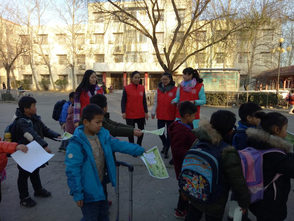 11月21日下午放学时分,人事处青年志愿者们来到附属小学校门口,对前来接孩子的家长发起了提前印制好的文明交通宣传单。随着小学生们陆续陆续列队放学,志愿者们也给小学生们发起了传单,可爱的孩子们,接着传单认真地读了起来,并对不能理解的地方向志愿者们请教。印制的几百宣传单很快就发放完毕,有的志愿者们还热心地给小学生示范安全过马路的动作,有的志愿者们引领小学生穿过马路