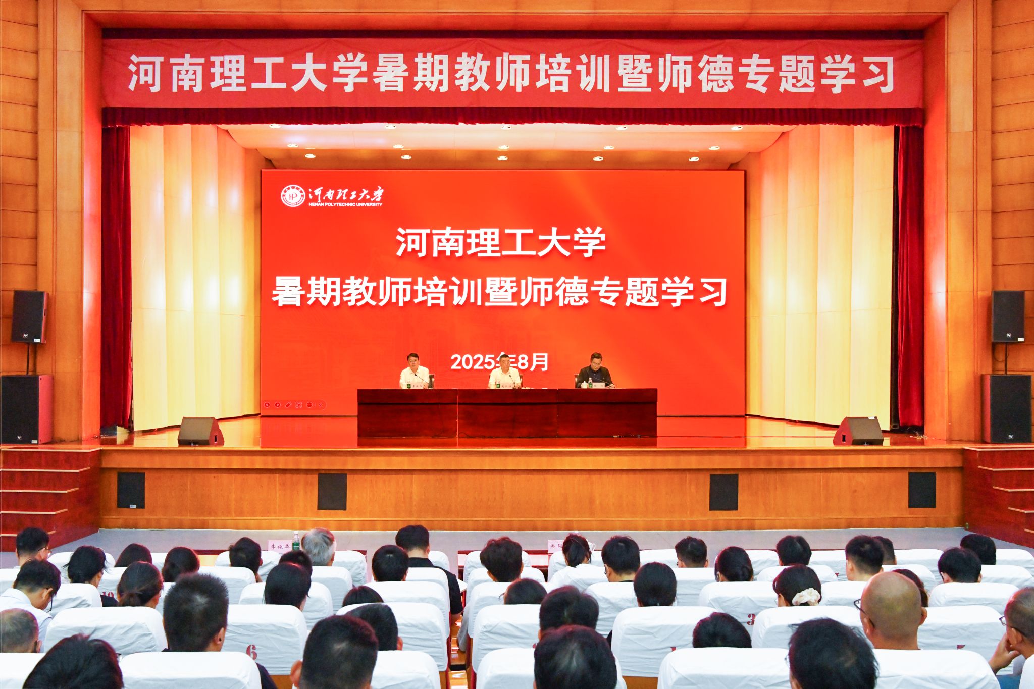 赵同谦校长在开班仪式上强调,开展教师培训与师德师风学习,是推动高素质专业化教师队伍发展、筑牢教育强国根基的关键举措。他结合教育领域发展大势与学校工作实际,向全体教职工提出三点希望:一是弘扬新时代教育家精神,做师德师风建设的践行者。要以 “四个相统一” 为遵循,践行 “四有” 好老师标准,当好 “四个引路人”,在理想信念、道德情操等方面持续提升,将教育家精神融入教书育人全过程。二是把握新时代教育发展新特点,做教育教学改革的创新者。要主动适应人工智能与高等教育深度融合的变革趋势,转变教育思想与教学方式,抢占教育创新新赛道,为学校教育高质量发展与一流建设赋能。三是聚焦新时代产业革命主战场,做科技创新的开拓者。要强化教学科研融合意识,依托产教融合、科教融汇,攻坚核心科研问题,为学校一流科技创新与河南 “五个强省” 建设贡献力量。