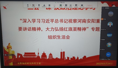为深入学习宣传贯彻党的二十大精神和习近平总书记视察安阳重要讲话精神,11月29日下午,瓦斯地质研究所党支部通过线上形式召开了“深入学习习近平总书记视察安阳重要讲话精神,大力弘扬红旗渠精神”专题组织生活会。党支部全体党员参会,会议由支部书记刘小磊主持,牛国庆院长应邀参加。