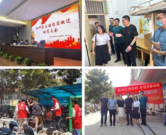 在搬迁之前,学院为学生准备了编织袋、记号笔、胶带、水果和矿泉水等物品,并抽调多辆三轮车及多名驾驶经验丰富的志愿者承接本次搬迁运输任务。在搬迁过程中,刘文军、李静、杨明在现场指挥和协调;马骥、高年级党员同志组成志愿服务小队穿梭在学生宿舍楼栋之间,协助搬运行李、为新迁入同学引路,帮助同学们尽快熟悉和融入新宿舍环境,他们忙碌的身影成为一道道靓丽的风景线。