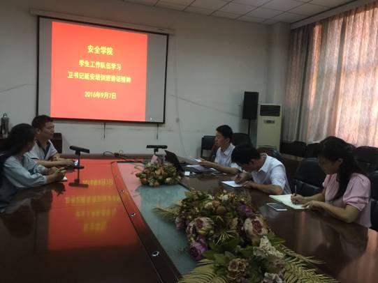 9月7日,安全学院在院楼304会议室召开全体学生工作人员专题会议,认真学习、贯彻校党委副书记卫中玲在延安党性教育培训班上的讲话精神,学院党委副书记李怀珍及全体专兼职辅导员参加了学习研讨。