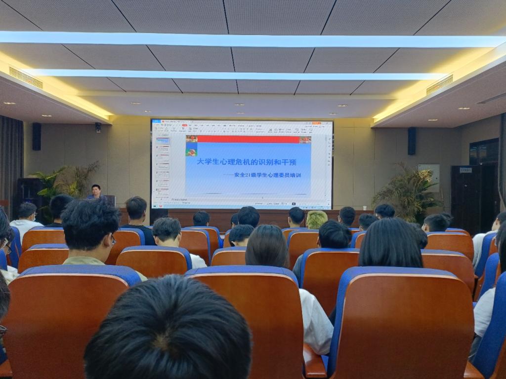 学工办主任戴俊首先给学生介绍了开展举办此次学生心理健康培训班的背景和重要意义,讲授了校园心理危机的意义、分类、原因等方面的相关知识,并就2021级学生心理危机的识别和干预提出了针对性的措施,帮助心理委员提高心理状态的识别和心理危机干预的能力,最后就心理委员如何在班级内部开展好心理健康教育工作进行了详细安排、提出了具体要求。其他年级辅导员老师分别根据不同年级的实际情况和学生心理健康状况,给参训心理委员详细讲解了学生出现心理问题或心理危机的主要原因和影响因素,分类阐述了心理危机重点关注与排查的对象的特征,并从宏观与微观方面给大家介绍和提供了校园心理危机预防与干预的主要方法途径和具体措施。