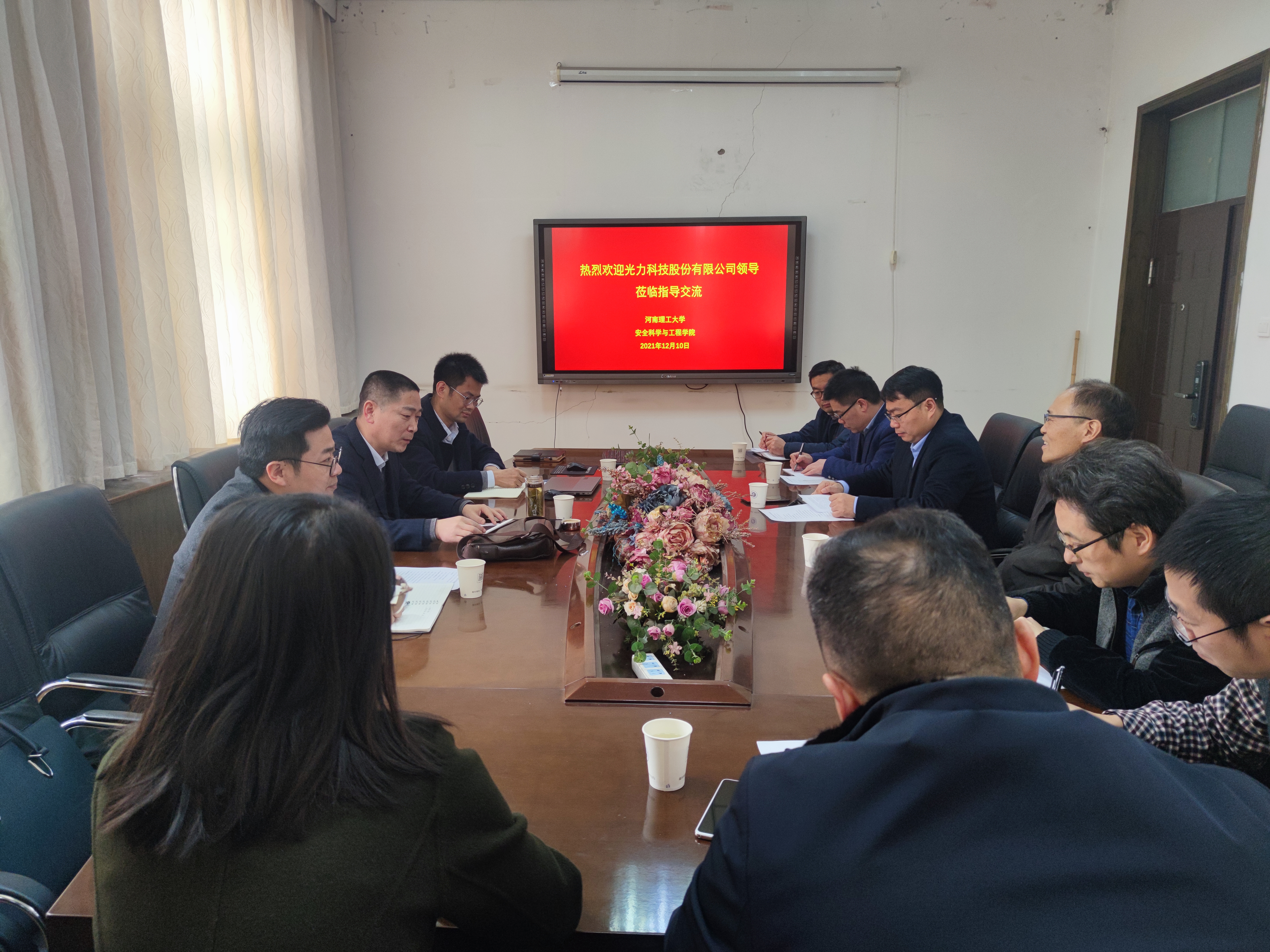 12月10日上午,光力科技股份有限公司研发中心副院长耿仪、人力资源总监吴国力、软件部部长吕文梁一行3人莅临安全学院交流,安全学院院长牛国庆、副院长陈向军及相关二级单位负责人在215会议室参加座谈。