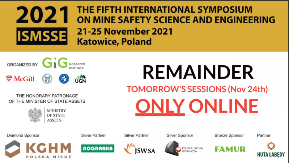 近日,河南省煤矿安全与职业危害防治国际联合实验室主任刘彦伟教授、固定成员左伟芹副教授在第五届矿山安全科学与工程国际研讨会(The Fifth International Symposium on Mine Safety Science and Engineering)分别做了Experimental Study on Gas Transport Law for Transitional Flow in Porous Media 和Study on Damage of Coal Pore Structure by Clean Fracturing Fluid主题报告。该论坛由波兰中央矿业研究院(Central Mining Institute)主办,自2011年以来,矿山安全科学与工程国际研讨会已经成功举办了四届,ISMSSE 2021的宗旨是创建一个国际论坛,讨论与采矿业安全相关的挑战,并展示技术进步。