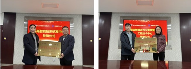 2023年3月20日,河南理工大学与光力科技共同成立的“瓦斯智能抽采研发中心”及“河南省燃爆动力灾害预警与应急工程技术研究中心”在光力科技进行挂牌。陈向军副院长、王燕教授、安全学院系所负责人、光力科技物联网装备研究院院长耿仪等参加此次挂牌仪式。