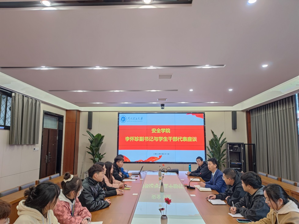 为加强学生思想政治教育和价值引领,促进学生干部成长成才,倾听学生诉求,回应学生关切,解决学生学习、生活中遇到的实际问题,3月21日,学院党委副书记李怀珍与学生干部代表在304会议室进行座谈,座谈会由辅导员许欣然主持。