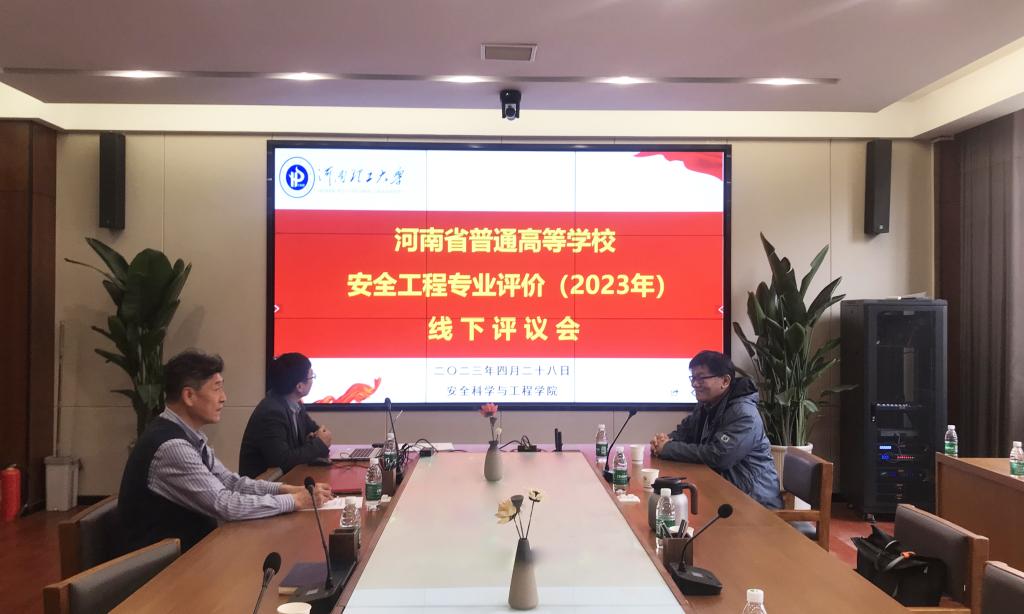 为全面落实河南省人民政府办公厅《关于加快一流专业建设提高人才培养质量的指导意见》(豫政办〔2022〕93号)以及“河南省本科专业评价和学分制改革动员部署暨加快一流专业建设工作会议”精神。2023年4月28日,河南省普通高等学校安全工程专业评价(2023年)线下评议会在河南理工大学安全学院304会议室正式召开。出席本次安全工程专业评价线下评议会的专家有河南理工大学安全科学与工程学院高建良教授,郑州大学力学与安全工程学院院长卫荣汉教授,郑州轻工业大学建筑环境工程学院副院长李森教授。高建良教授任专业评价组组长。