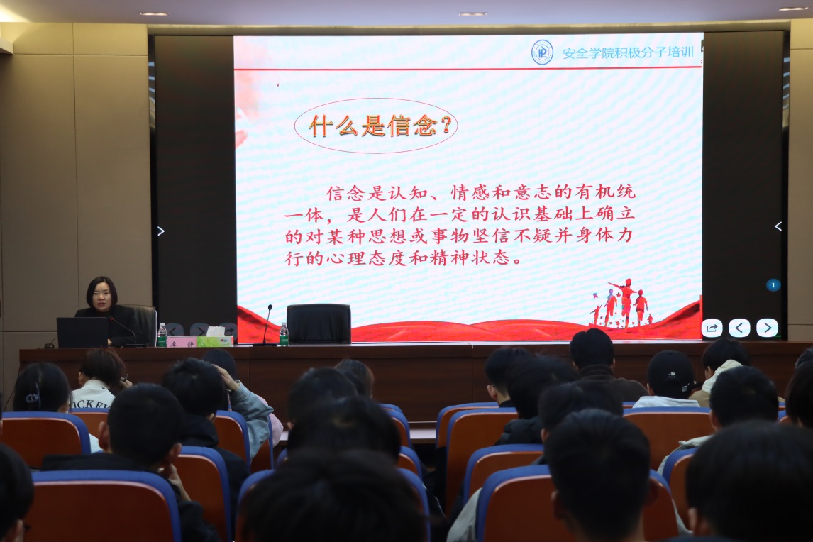 李静围绕“坚定马克思主义信仰,树立科学的理想信念”这一主题,从理想信念的作用;共产党员的理想、信念、信仰;大学生的党性修养三个方面讲授,号召青年学生树立远大理想,坚定马克思主义信仰,积极投身中国特色社会主义的伟大实践。她生动讲述习近平总书记的七年知青岁月,以黄大年、罗阳、黄文秀等时代楷模的先进事迹激励同学们胸怀“国之大者”,珍惜韶华、奋发有为,勇做走在时代前面的奋进者、开拓者、奉献者。最后,她引用习近平总书记对青年的寄语“得其大者可以兼其小”,激励我院积极分子听党话、跟党走,努力为实现中华民族伟大复兴的中国梦贡献力量。