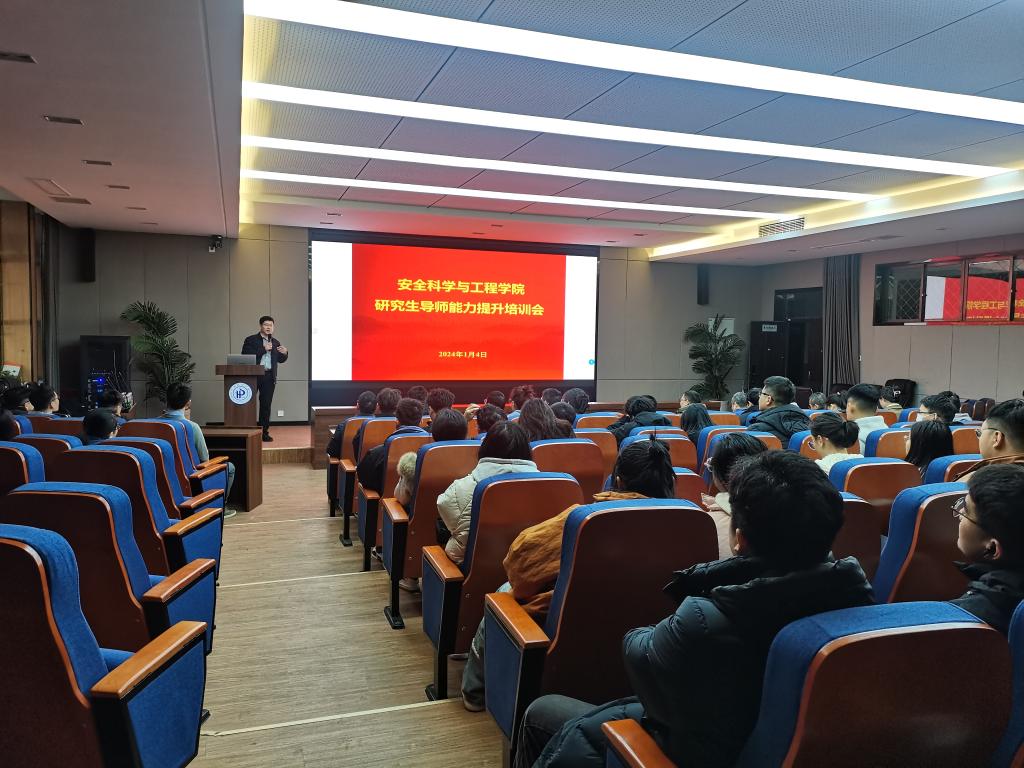 为加强研究生导师队伍建设,提升研究生导师指导能力,安全科学与工程学院于2024年1月4日在学院101会议室成功举办了2024年研究生导师能力提升培训会。本次会议由分管研究生工作的副院长杨明主持,学院优秀研究生指导教师、新进青年教师以及研究生工作办公室人员参加了会议。