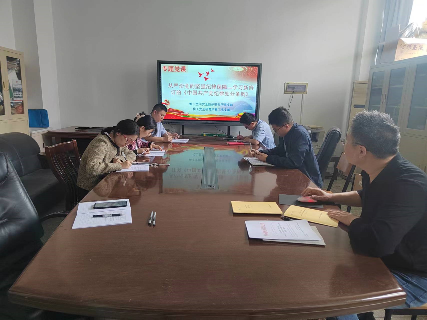 为学习贯彻新修订的《中国共产党纪律处分条例》,增强党员的自我管理和自我监督,持续深化党的纪律建设,4月16日下午,围绕学校《关于在全校党员中开展党纪学习教育的工作方案》和学校法治教育宣传周主题,学院地下空间安全防护研究所党支部与化工安全研究所党支部开展主题党日暨支部共建活动。