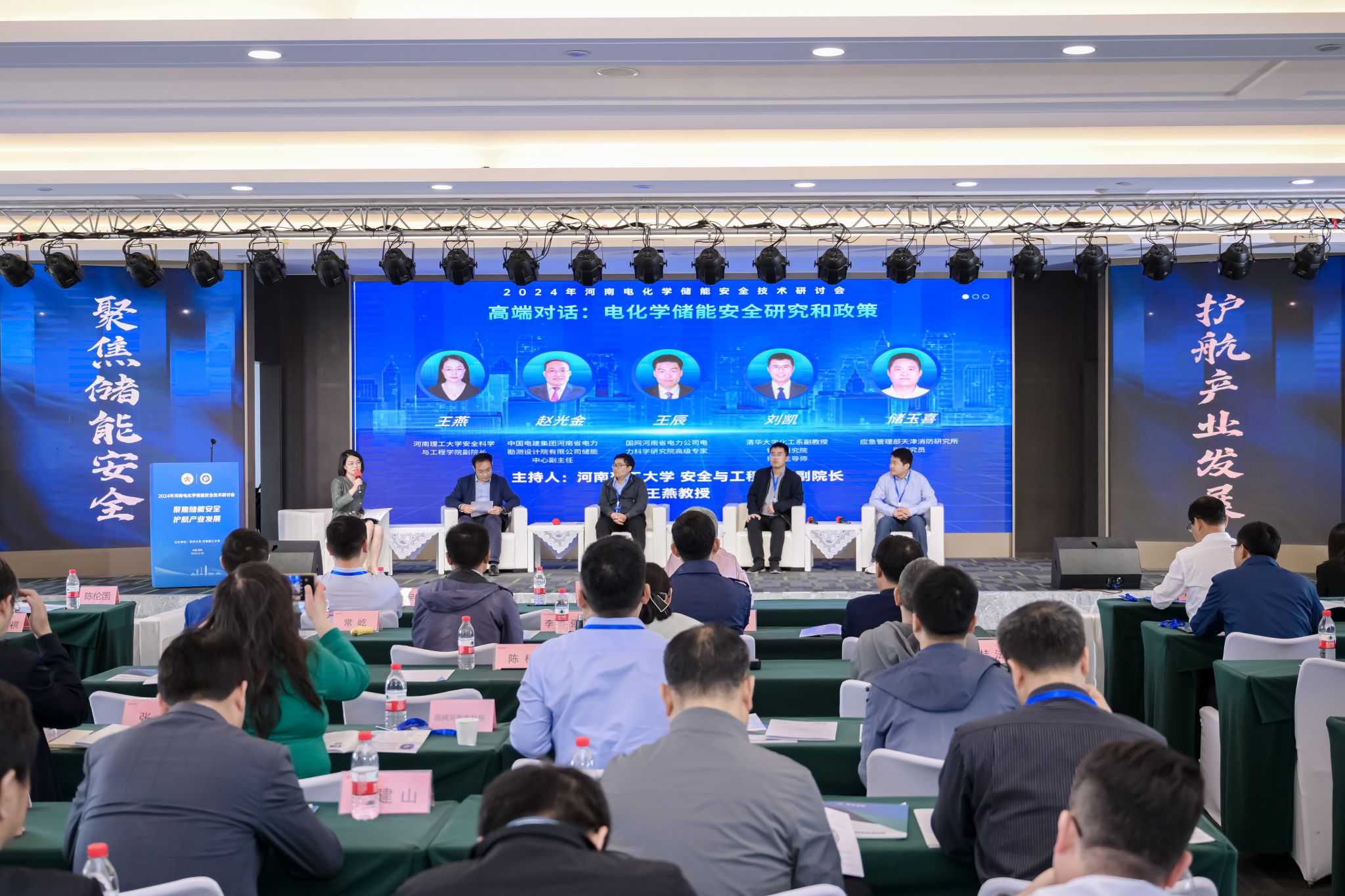 会议学术交流阶段,中国科学技术大学研究员王青松、北京交通大学教授张彩萍、应急管理部天津消防研究所副研究员储玉喜、国网河南综合服务有限公司副总经理刘浩等14名专家学者、企业代表分别围绕锂离子电池热失控传播及火蔓延机制、电池系统能效提升与管控关键技术、阻燃电解液分子设计、储能电站早期预警与消防联动关键技术、电化学储能标准规范、产业发展政策现状与需求等内容作了交流报告。本次会议另设“高端对话”环节,与会专家学者、企业代表深入讨论电化学储能安全技术、政策以及应用中的核心难题,提出切实可行的解决方案及科学建议,为河南省电化学储能行业的安全管理、健康发展指明了方向。