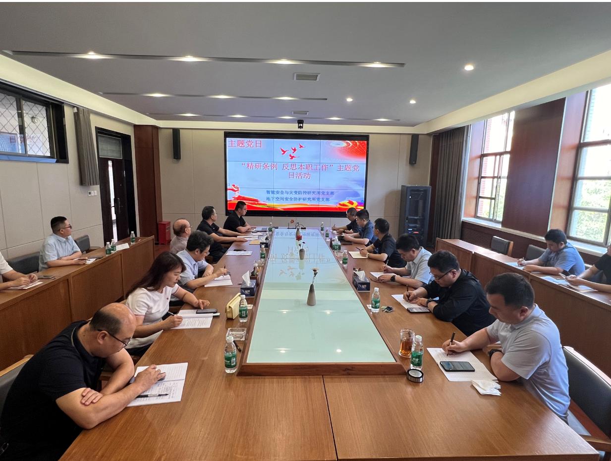 为了持续深入贯彻落实党纪学习教育要求,全面准确理解《条例》的主旨要义,真正学深悟透、学以致用,并对照《条例》反思本职工作和自身存在的薄弱点,做到警醒、知止、自觉用党规党纪校正思想和行动。5月14日下午,地下空间安全防护研究所党支部和智能安全与灾变防控研究所党支部在学院304会议室举办“精研条例 反思本职工作”党纪学习教育主题党日活动。