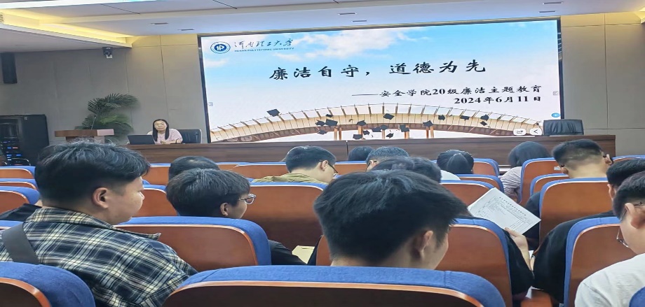 为引导毕业生树立正确的价值观,加强廉洁教育,培养毕业生良好的职业道德,6月11日下午,安全学院在院101会议室开展了2024届毕业生廉洁教育活动。毕业班辅导员王伟伟,毕业生代表100余人参加会议。