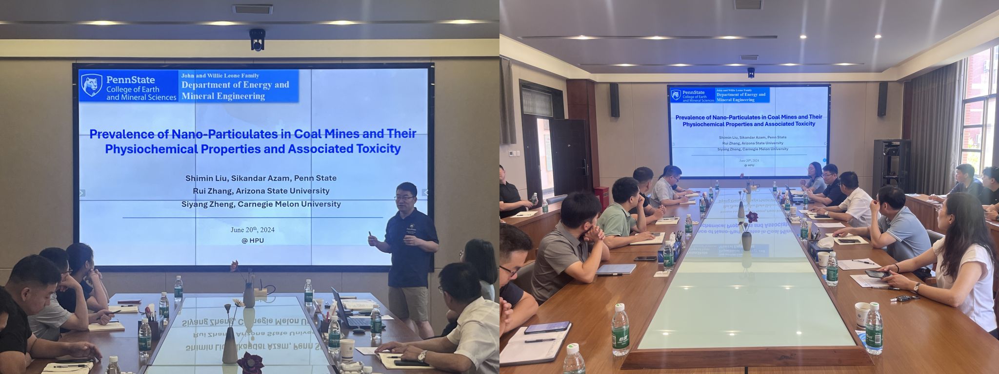 2024年6月20日,应安全科学与工程学院、煤矿灾害预防与抢险救灾教育部工程研究中心共同邀请,美国宾夕法尼亚州立大学刘世民教授在安全学院304会议室为学院师生做了题为《Prevalence of Nano-Particulates in Coal Mines and Their Physiochemical Properties and Associated Toxicity》的学术讲座,会议由安全学院副院长王燕主持。