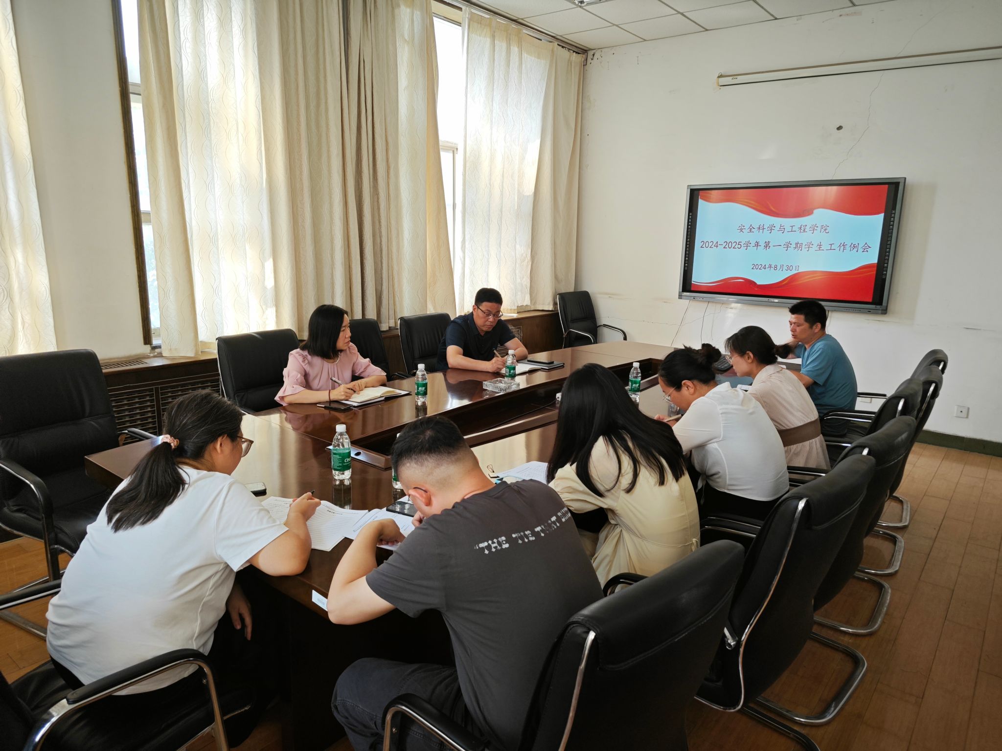 为进一步明确新学期学生工作任务,统筹做好新学期学生管理工作,落实学校学生工作会议提出的要求,8月30日上午,安全学院学工队伍在院215会议室召开2024-2025学年第一次学生工作例会,院党委书记刘文军、院党委副书记李静及全体专职辅导员参会,会议由院党委副书记李静主持。