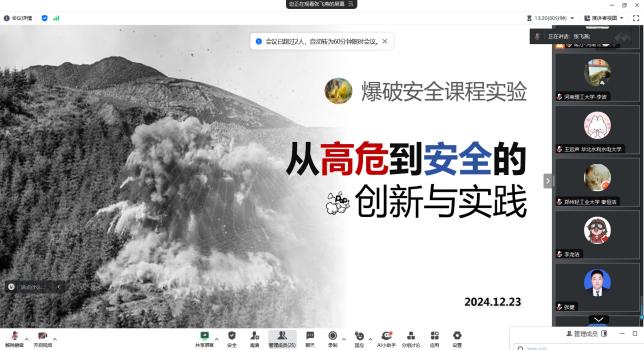 2024年12月23日,河南省安全工程专业虚拟教研室示范课程建设分享交流会顺利召开。本次会议围绕安全工程专业示范课程建设为主题,进行了充分而深入的分享和经验交流研讨。会议由河南理工大学安全学院副院长李波主持,来自河南省多所院校安全工程专业的学院领导、系主任以及专业教师齐聚线上交流讨论。