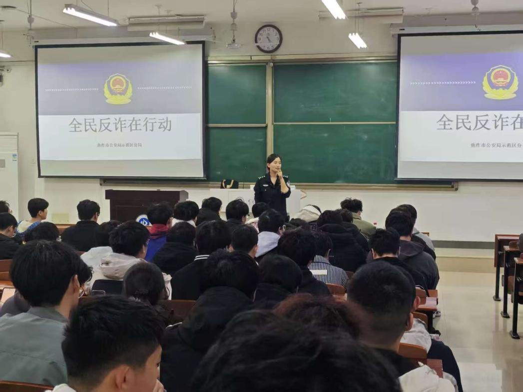 为提高大学生的反诈、防骗意识,有效遏制电信网络诈骗向校园蔓延的趋势。安全学院于3月11日下午在三教3102、3106教室举办了“全民反诈在行动”主题宣传讲座,此次讲座由焦作市公安局示范区分局的苏警官主讲,2022、2023级全体本科生参加了讲座。