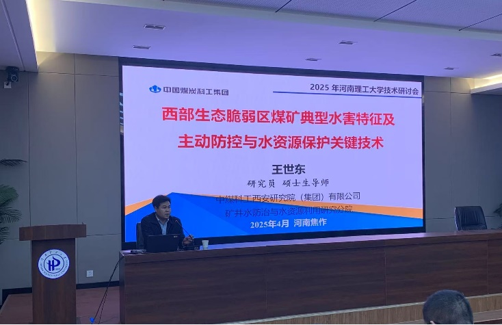 报告会上,王世东以《西部生态脆弱区典型水害特征及主动防控与水资源保护利用技术》为题,围绕“西部生态脆弱区煤矿水害类型”“底板奥灰水害特征”“顶板砂岩水害特征”“水害主动过防控与水资源保护关键技术”四方面进行讲解,着重分析了水害及矿井水保护问题、相关国家政策,重点介绍了松散层改造、隔水层修复、帷幕截水减排、底板奥灰水治理、导水裂隙带主动抑制等关键技术,同时结合相关水害案例使学院师生对不同区域水害特征及水害防控技术有了深刻印象。