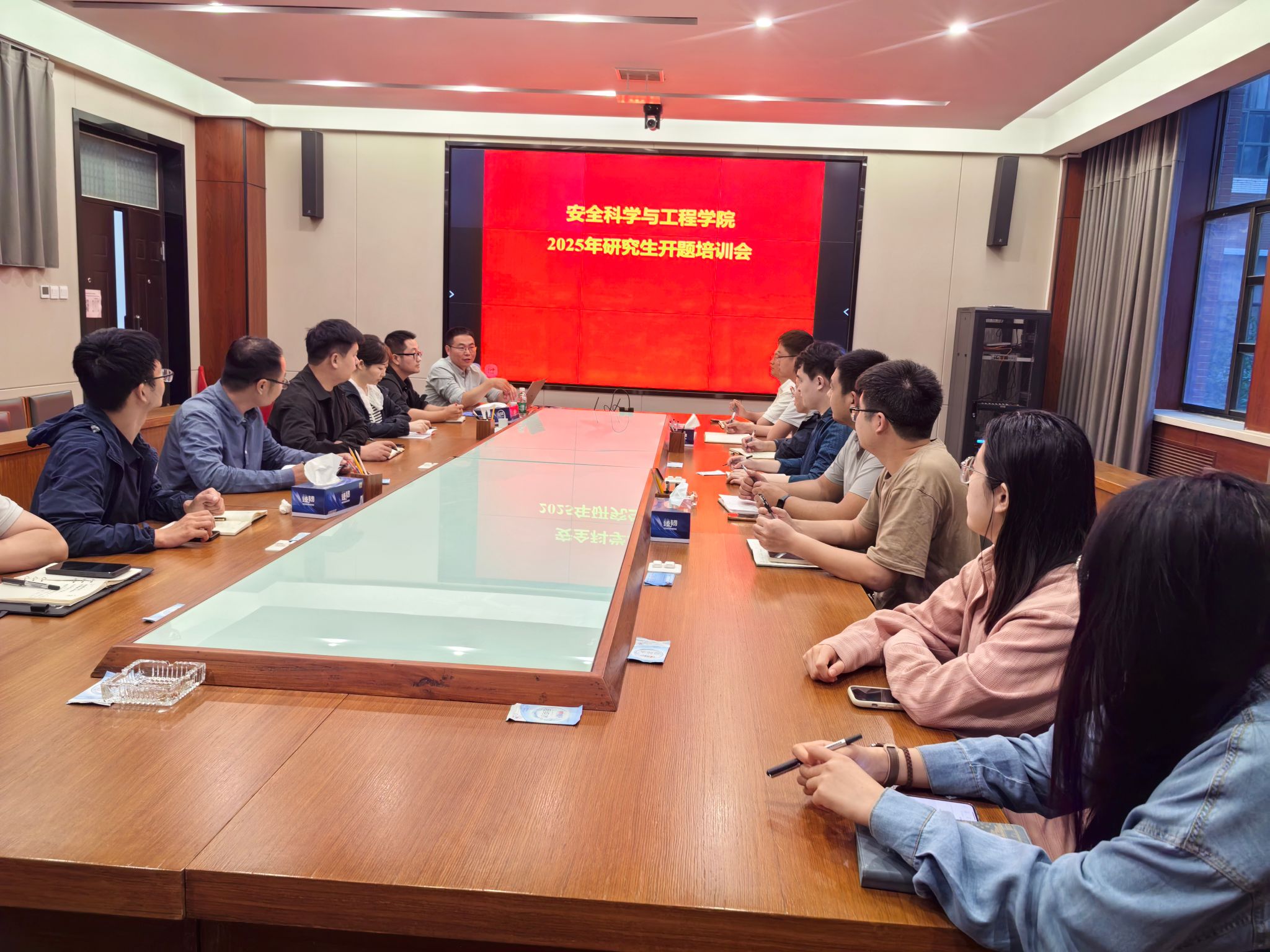 为规范研究生培养过程,切实提高学位论文开题质量,把好研究生学位论文的“第一关”,9月26日,安全学院组织召开了2025年研究生开题培训会。学院主管研究生工作的副院长刘勇、研究生工作办公室全体工作人员以及研究生导师代表参加了本次会议。会议由刘勇主持。