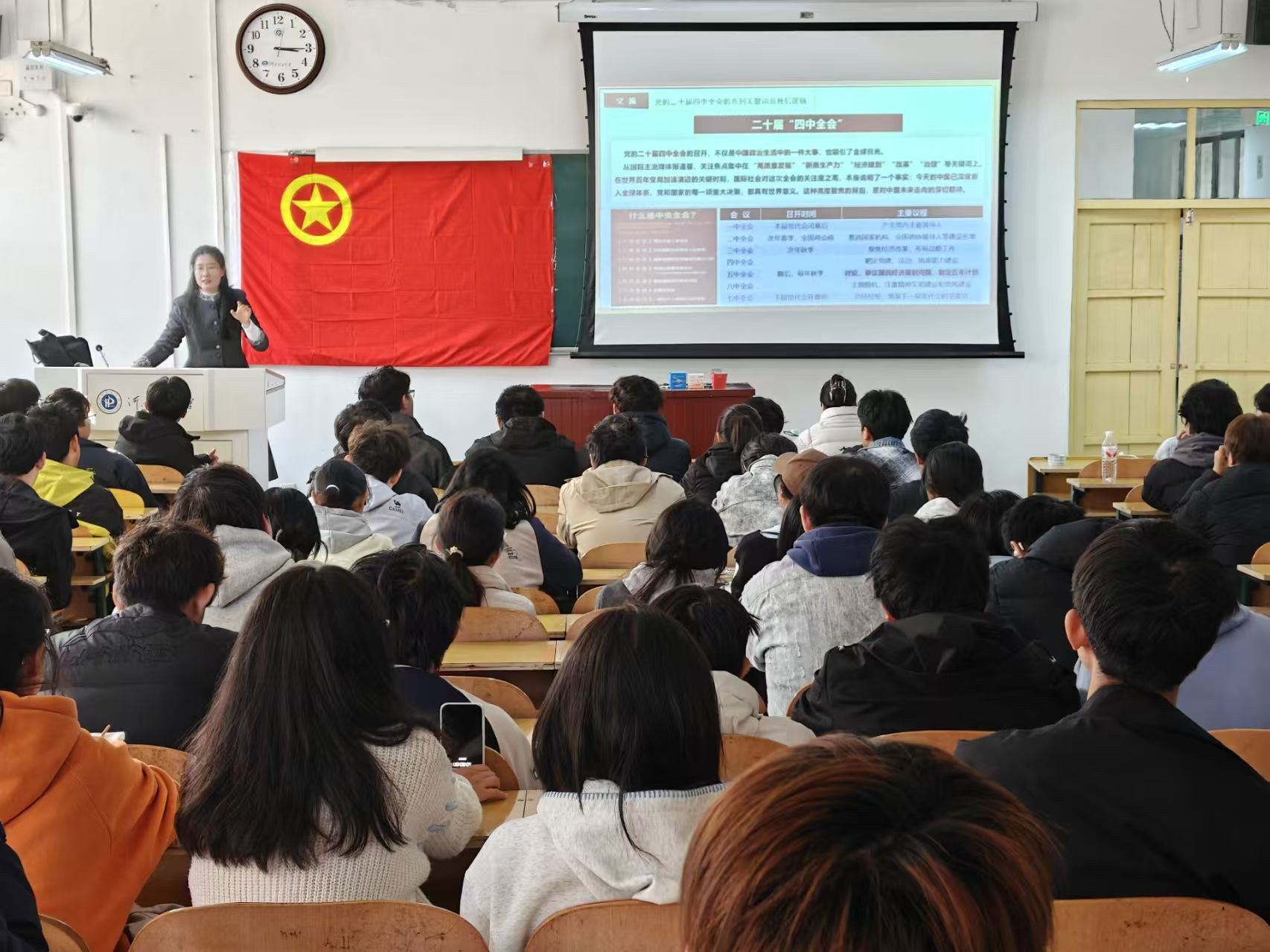 任欣云以“学习党的二十届四中全会精神,凝聚民族复兴的磅礴伟力”为主题,从回溯党的历届四中全会的演进及逻辑、深入领会党的二十届四中全会的重大意义、全面把握“十四五”时期我国经济社会发展重大成就、深刻理解党的二十届四中全会的原则目标、挺膺担当新时代青年大学生的使命与责任等五个方面做了深入宣讲和系统阐释,引导青年学生准确把握全会核心要义,了解国家发展方向,积极主动将个人理想追求融入党和国家事业之中。