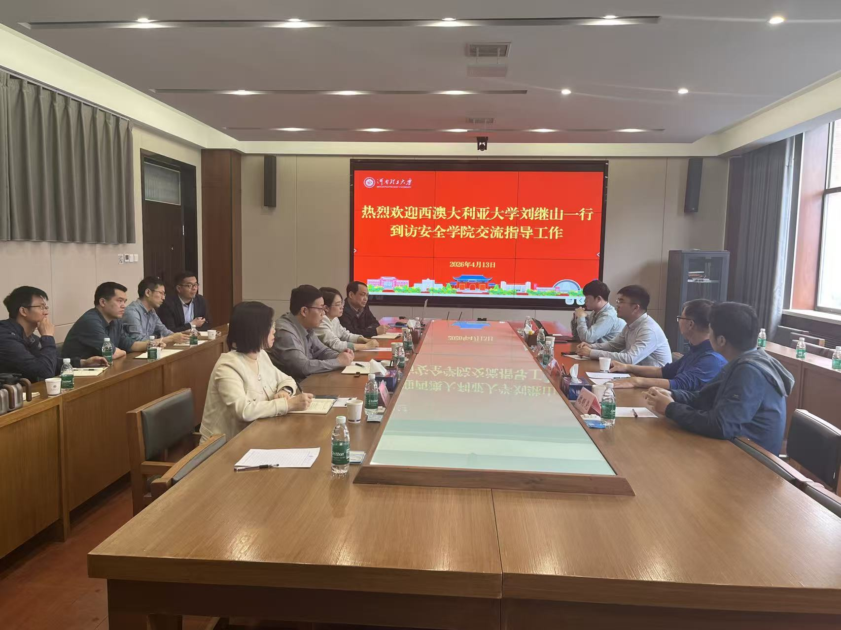 刘继山教授一行4人分别来自于西澳大利亚大学、清华大学、中国矿业大学和东北大学。本次学术交流活动为河南理工大学安全学院与西澳大学工程学院和国内高校在教师访学、人才培养、课题联合申报等方面的合作路径进行了有益探索。