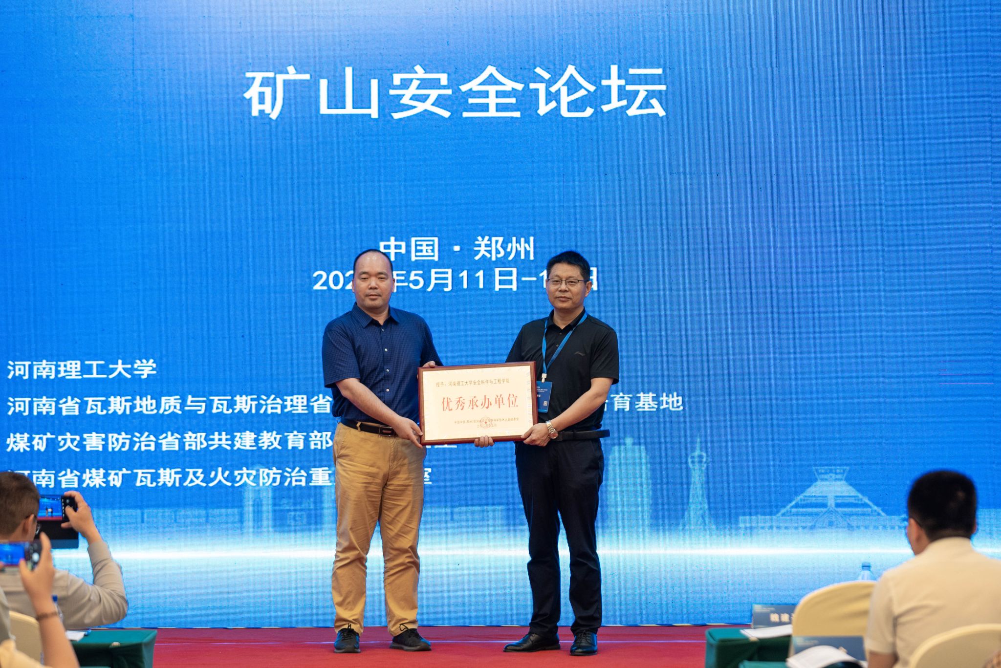在“5·12全国防灾减灾日”到来之际,由河南省安全生产和职业健康协会主办、河南理工大学等相关单位承办的2024中国中部(郑州)防灾减灾与应急科学技术大会于5月11日-13日在河南省黄河迎宾馆会议中心举行。本次论坛持续2天,以“智慧应急与安全发展”为题,设“主会场、分论坛”两大板块,安全学院承办“矿山安全论坛”,并获得“优秀承办单位”荣誉称号。