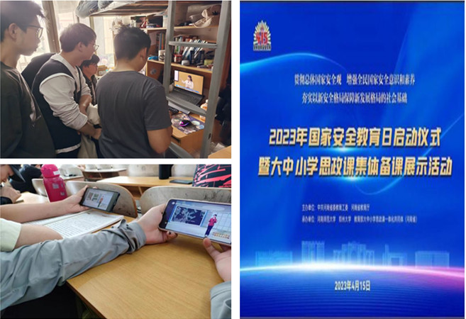 为全面落实党的二十大精神,深入贯彻总体国家安全观,推进大学生的安全教育,增强师生国家安全意识和素养,在第八个全民国家安全教育日到来之际,学院各团支部组织学生在线上观看了“2023年全民国家安全教育日启动仪式暨大中小学思政课集体备课展示活动”。