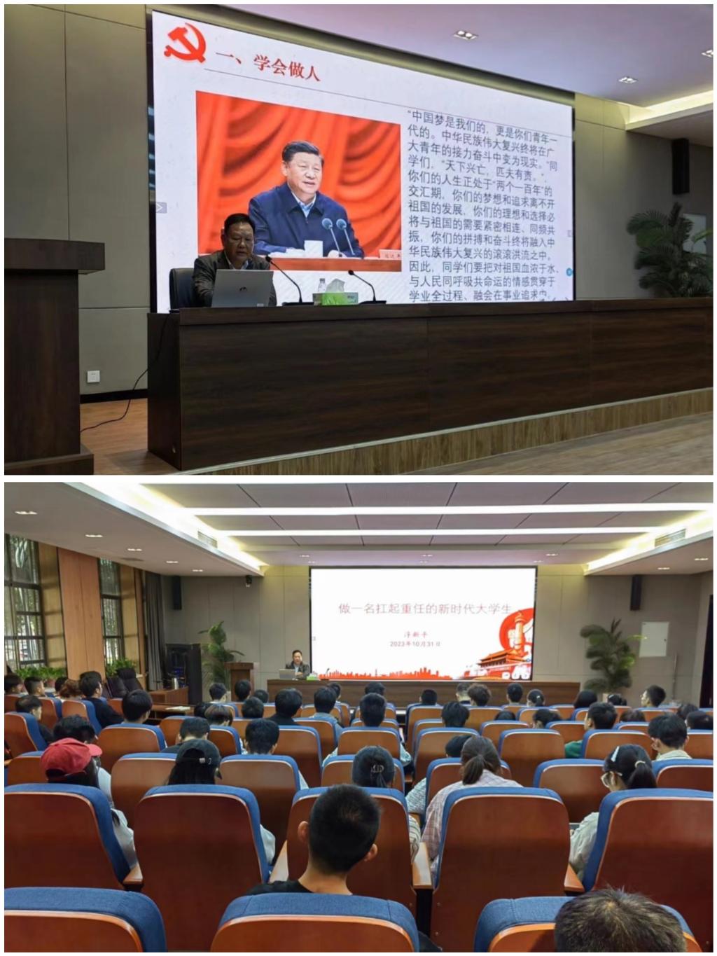 为深入学习贯彻习近平新时代中国特色社会主义思想,教育引领2023级新生扣好入党“第一粒扣子”,切实筑牢理想信念根基,10月31日下午,安全学院正处级组织员浮新平在院101会议室开展题为“做一名扛起重任的新时代大学生”的入党启蒙教育专题讲座,我院2023级120余名新生参加。