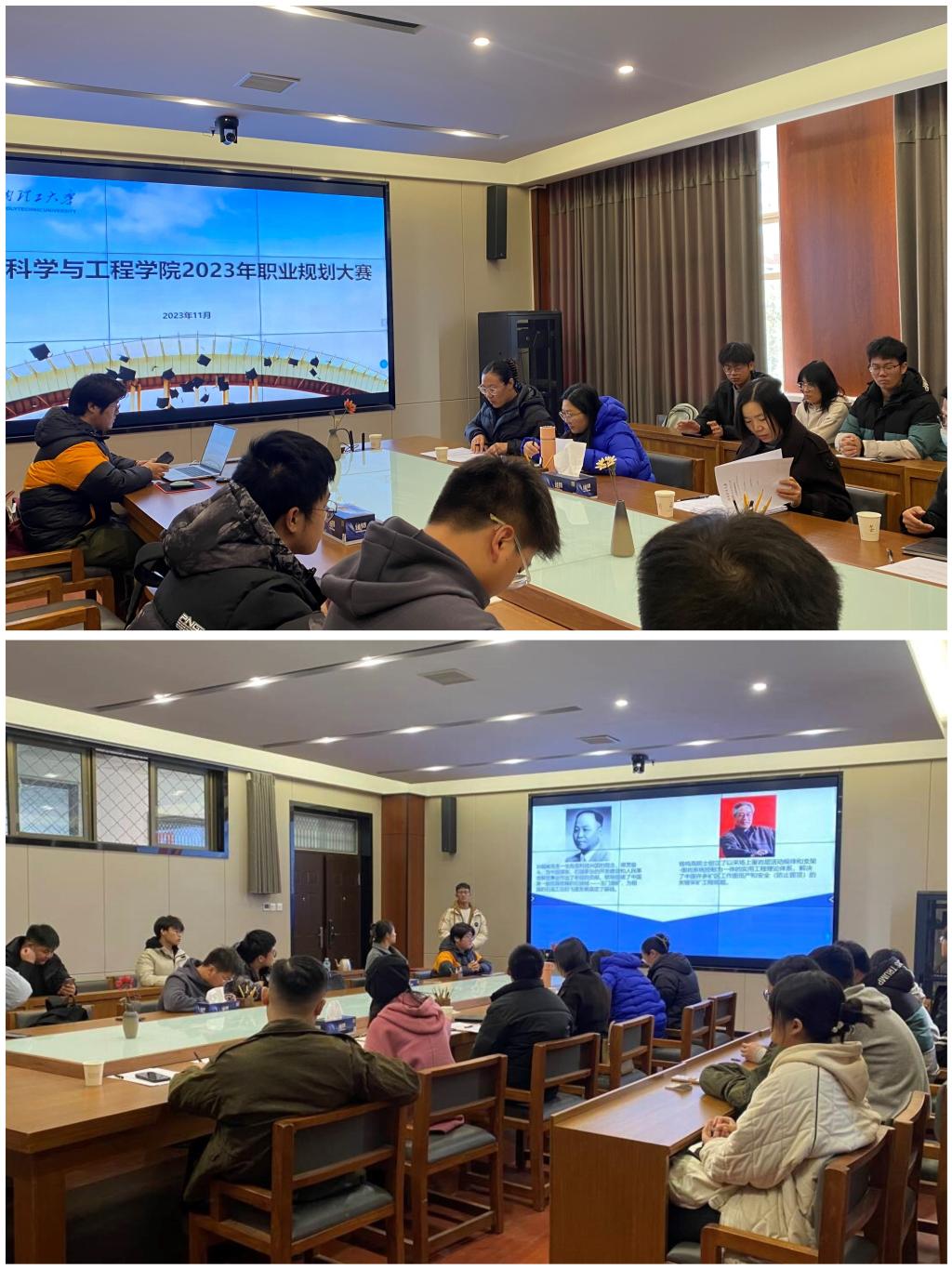 为引导学生科学合理地规划大学学习与生活,增强大学生生涯规划意识,提升就业能力,安全学院于11月30日在304会议室举办了首届大学生职业规划大赛院赛,学院党委副书记李静、全体辅导员担任评委,班长联席会全体成员参加,各年级从170余名同学中选拔出12名学生参加比赛。