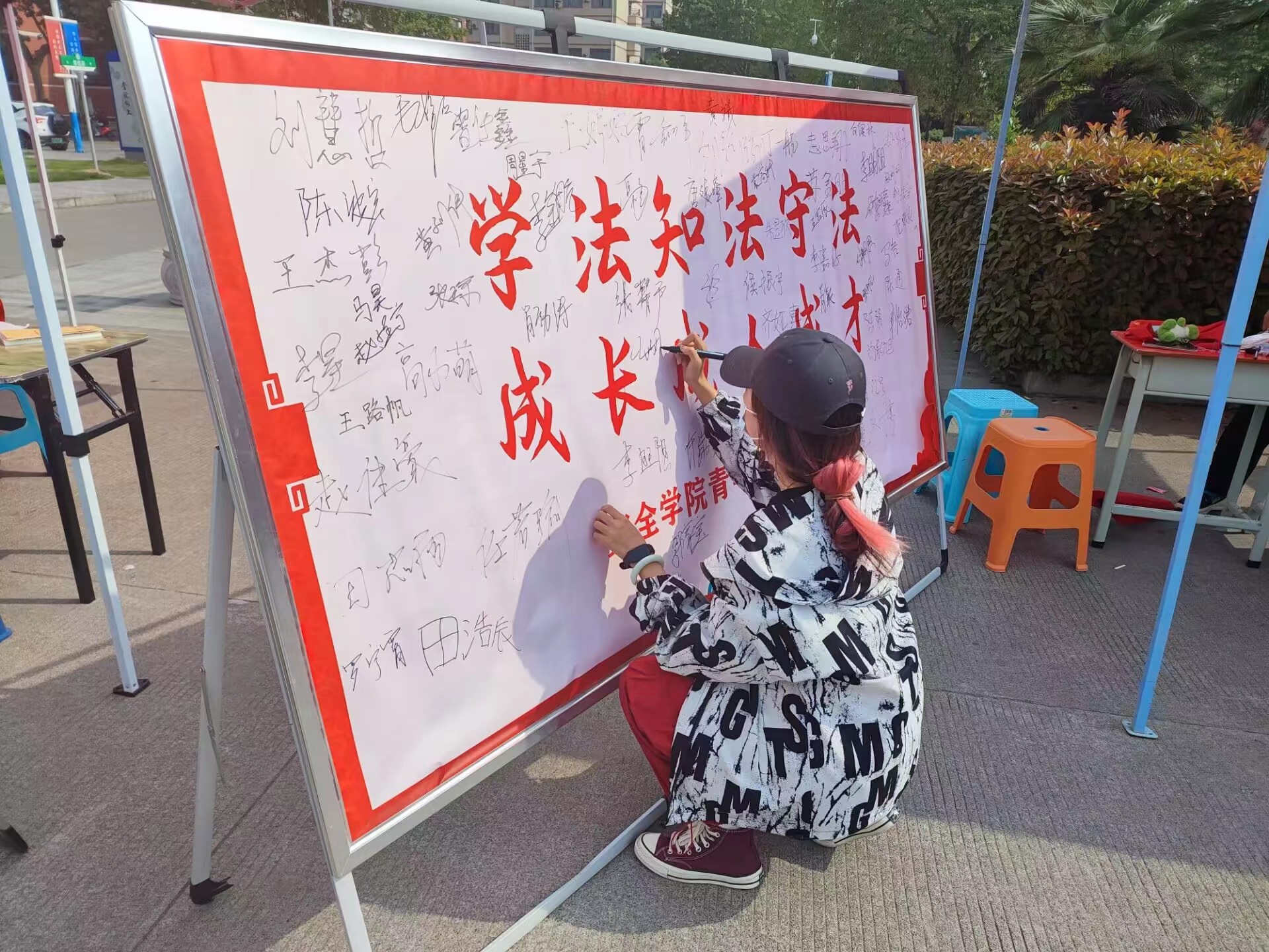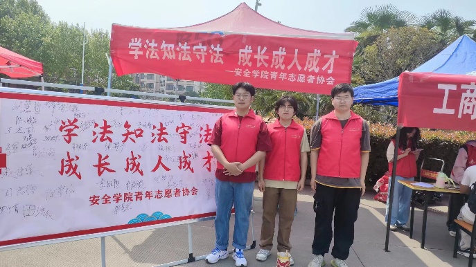 为提高大学生知法、守法意识和自我保护能力,营造和谐健康文明的校园环境,4月20日上午,安全学院青协在学苑餐厅门口举办了“学法知法守法,成长成人成才”法治教育主题活动。