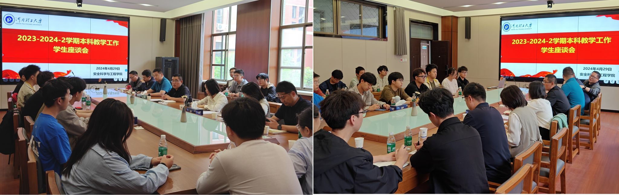 为全面了解学院本科教学运行状况,及时发现和解决教学工作中存在的问题,安全学院于4月29日上午举办2023-2024-2学期本科教学工作学生座谈会。会议由副院长李波主持,副书记李静以及院团委、教科办、示范中心负责人和各系所教学负责人参加会议。