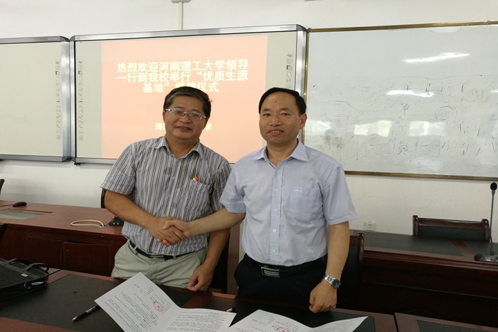 为顺应招生制度改革的新形势,进一步提高生源质量,有效落实《河南理工大学关于进一步加强招生宣传工作的意见》,积极做好招生宣传工作,根据学校招生就业处的统一部署,5月9日,文法学院院长穆乃堂、党委副书记张建新前往海南海口进行优质生源基地考察、洽谈,并代表学校与海南省农垦中学签订优质生源基地建设协议。