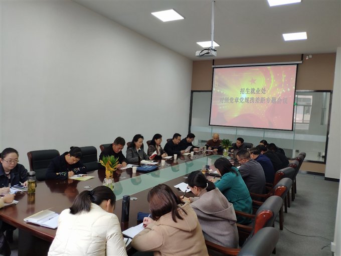 11月15日下午,招生就业处在创新创业大楼二楼会议室召开“不忘初心、牢记使命”主题教育对照党章党规找差距专题会议。学校主题教育第五巡回指导组组长张如意出席指导。招生就业处处领导班子成员及全体工作人员参加了会议。会议由支部书记桑振平同志主持。
